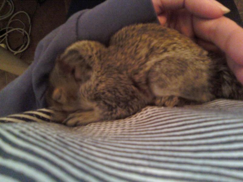Little baby squirrel fell from her nest and attached herself to me. Just what I wanted - fleas! I brought her to her new home at Wild Baby Rescue in Blairstown NJ. I think the dog and cats were hoping to keep her.
